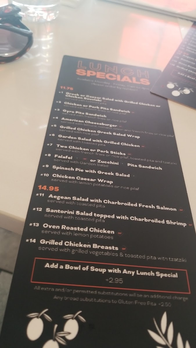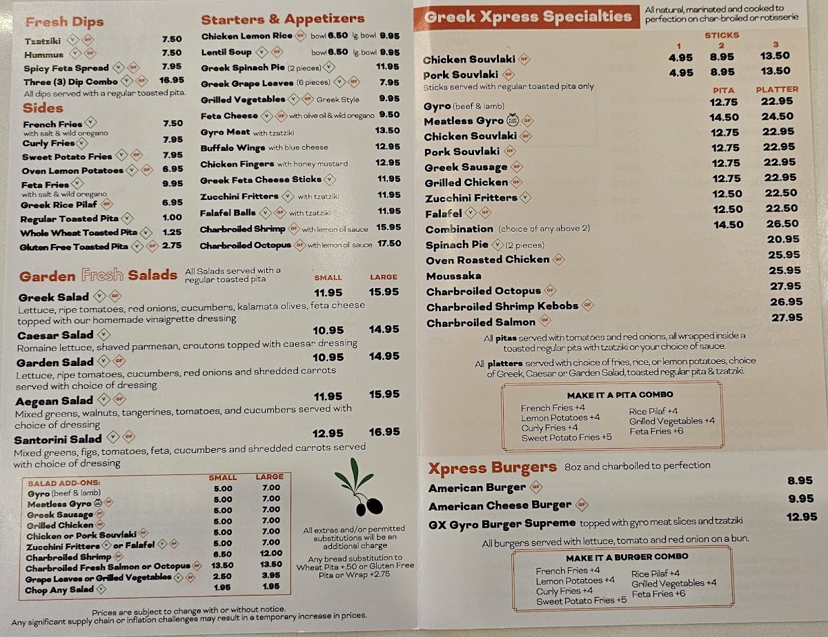 In addition, the menu features Pita options, including the ever-popular Chicken Souvlaki Pita and the savory Shrimp Pita. The Sticks menu also doesn’t disappoint with choices like Pork Souvlaki Stick and Chicken Souvlaki Stick, perfect for a light snack or as part of a meal.